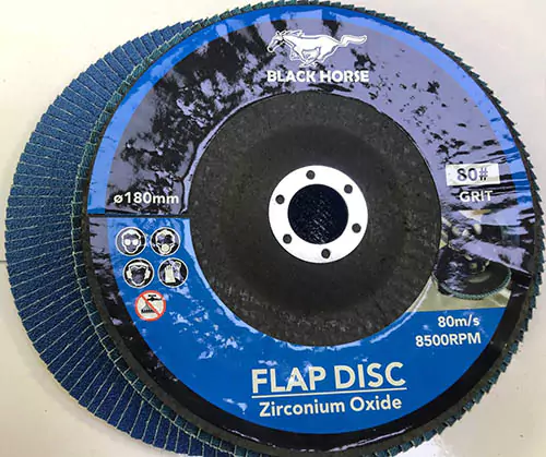 سنباده فلاپ دیسک زیرکونیوم بلک هورس محصول کشور چین  برای پرداخت و صاف کردن سطوح فلزی، فولاد ضدزنگ، استیل، آلمینیوم مناسب است.گرید های سنباده فلاپ بلک هورس شامل: گرید 40، 60، 80، 100 و 120 می باشد.